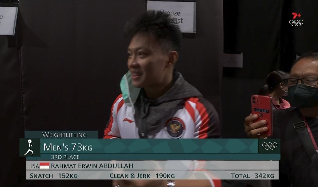 Rahmat erwin abdullah meraih medali perunggu pada cabang olahraga angkat besi kelas 73 kilogram putra. Aksi lifter indonesia, rahmat erwin abdullah dalam pertandingan pada nomor 73 kg cabang olahraga angkat besi olimpiade tokyo 2020 di jepang, 28 juli 2021. Rahmat erwin abdullah menjadi pusat perhatian seantero indonesia saat berlaga olimpiade tokyo 2020.dia si kuda hitam dengan menyabet perunggu di kelas 73 kg. Indonesian weightlifter rahmat erwin abdullah has matched the olympic record for the clean and jerk in the 73kg category, lifting 190kg during wednesday's early tokyo session. Kini, rahmat tinggal menunggu hasil grup a yang akan diselenggarakan pada 19.50 waktu setempat.